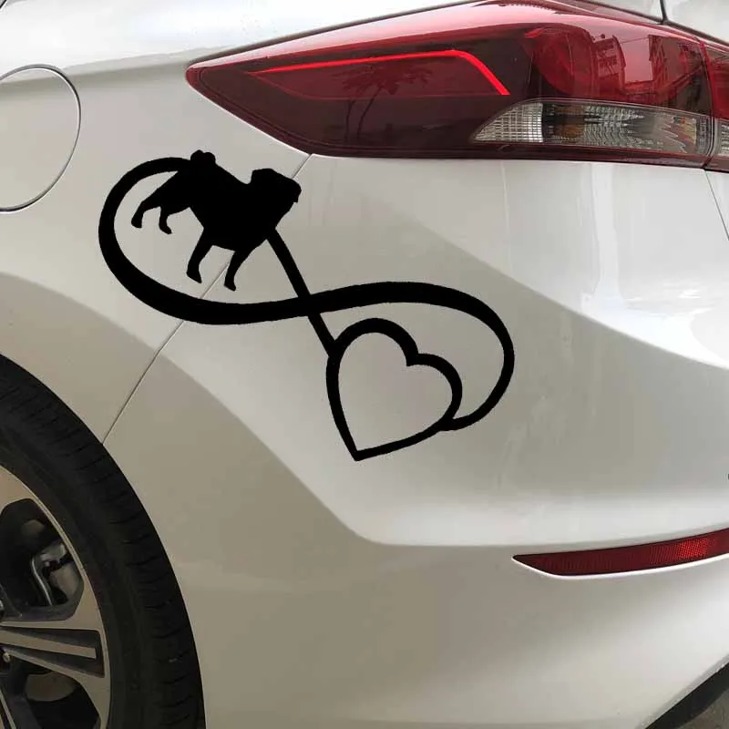 Наклейка для автомобиля Милая Мопс ЛЮБОВЬ бесконечное Сердце Собака ПВХ наклейка на бампер, окно наклейка для автомобиля креативный Водонепроницаемый черный/белый, 17 см * 8 см