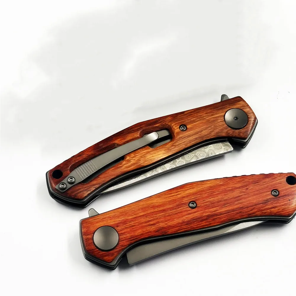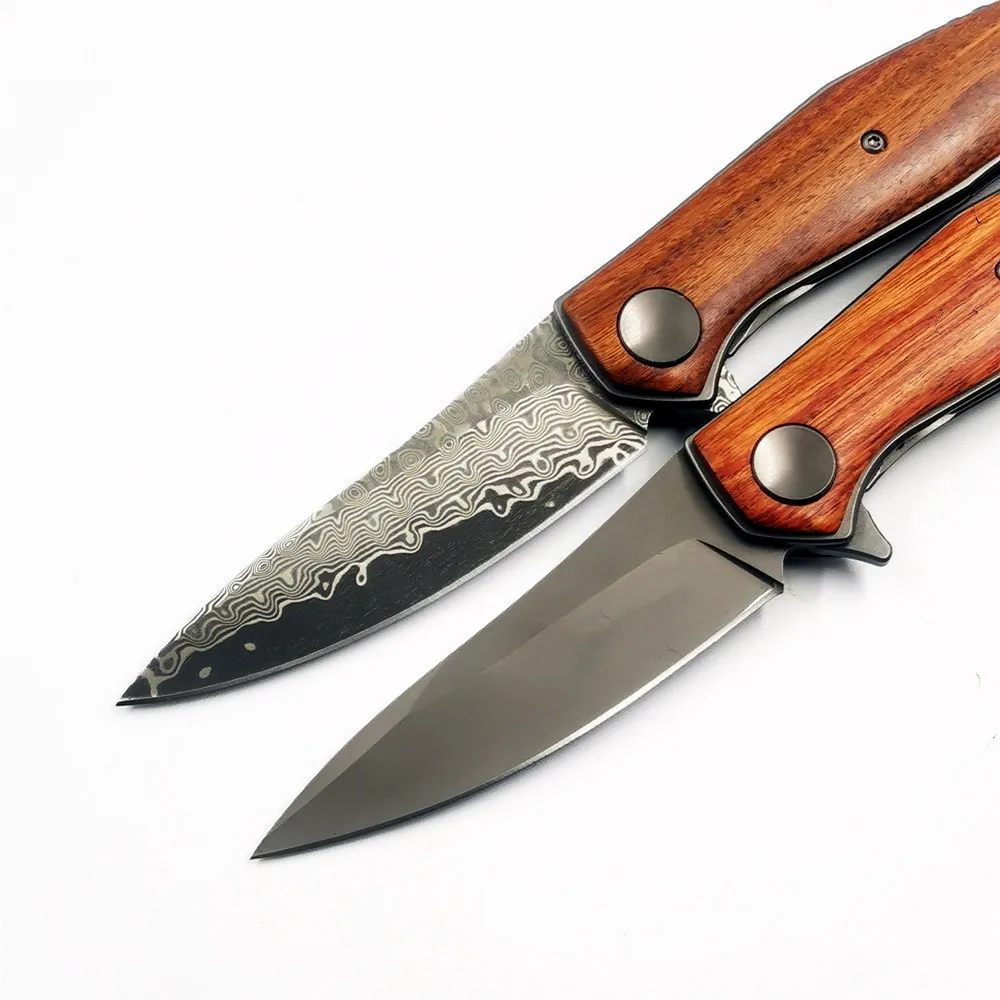 Нож OEM 4020 деревянная ручка Дамасская сталь 8Cr1 3mov/VG-10 лезвие edc нож встроенный подшипник быстрое открытие инструменты для самообороны