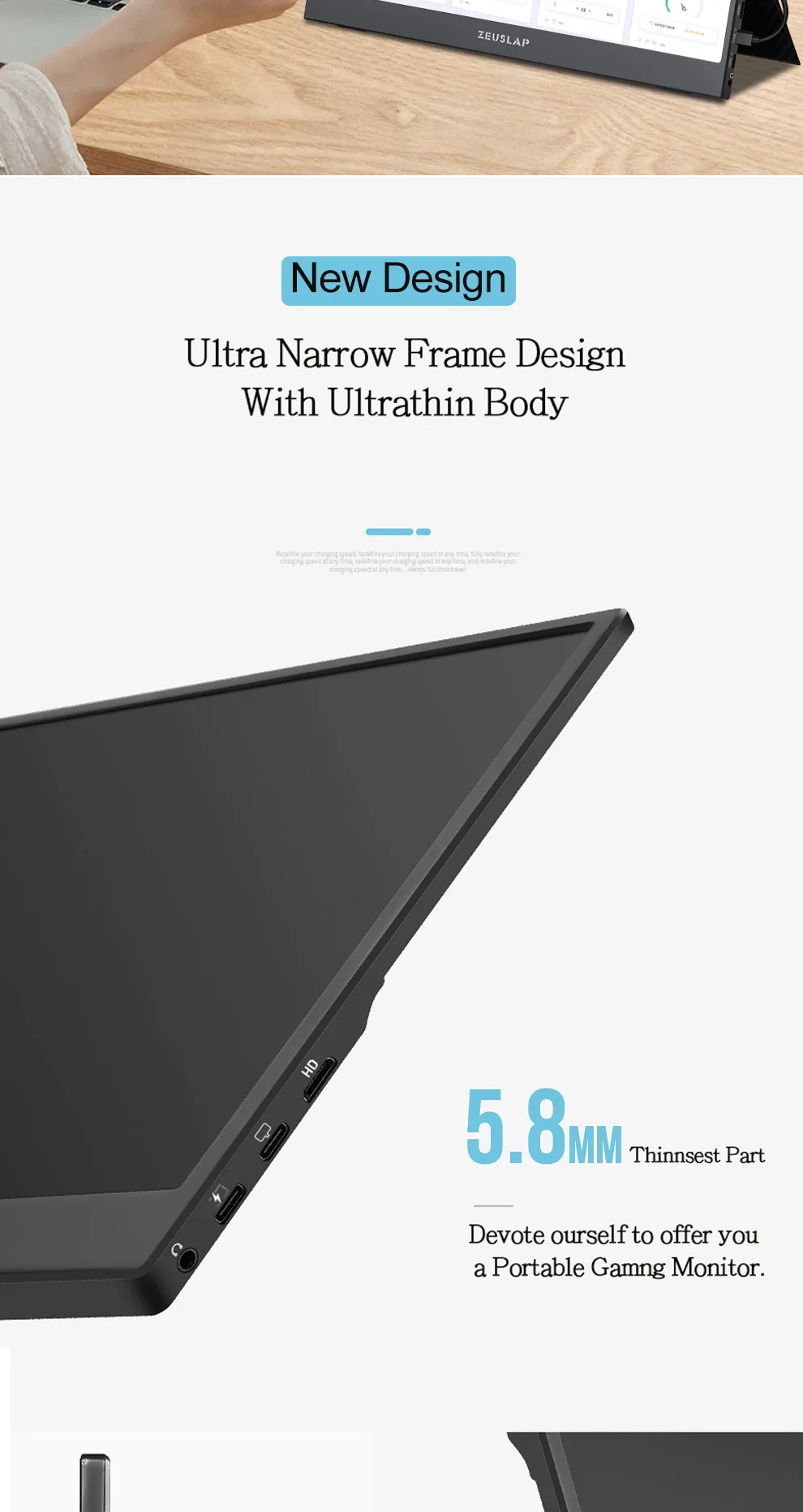 【 Портативный ультра тонкий светильник Вес 】ZEUSLAP ZP156T 15,6 дюймов сенсорный экран Портативный монитор использует самую последнюю удобному материалу эта его Вес светильник er и корпус тоньше. Легко положить в портфели и стать идеальным компаньоном для путешествий для ноутбуков, чтобы максимизировать эффективность работы.