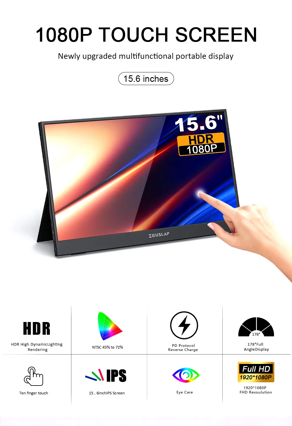 【 10-точечный Touch】The ZEUSLAP 15,6 дюймов HD портативный монитор заключается в том, что он предлагает сенсорный экран, что делает редактирования фотографий (с помощью пальцев или stylus), а также пролистывание, написание и Аннотация непосредственно на экране становится гладким и естественным процессом, повышает эффективность работы.