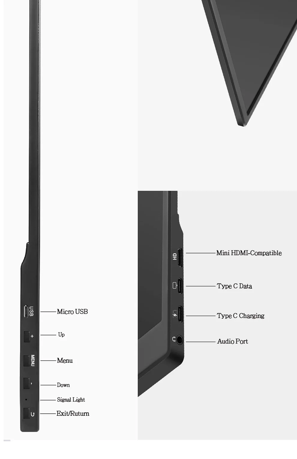 【Plug and play】это портативный монитор, который можно подключить с помощью одного кабеля USB C, это определенно сэкономит ваше время и повысит вашу эффективность. Вы также можете подключить его к устройству с помощью кабеля, совместимого с HDMI, с кабелем питания, драйверы не требуются.