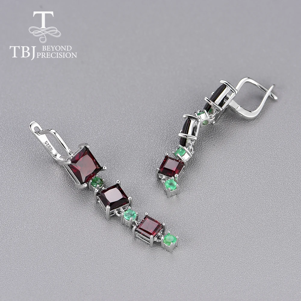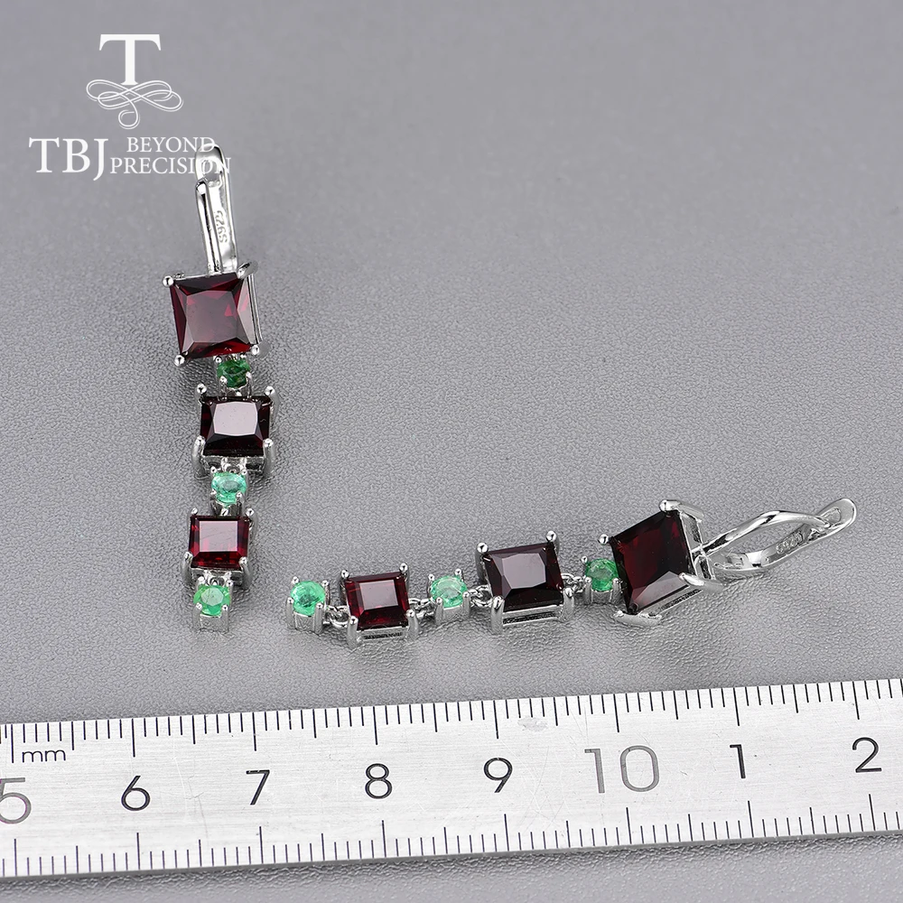 Изделие: ювелирный набор из серебра 925 пробы с натуральными драгоценными камнями Материал: серебро 925 пробы, белый цвет Серебряный Вес: около 7.5г (один комплект) Центральный камень: натуральный гранат, смешанный размер Вес драгоценного камня: около 9 карат Обработка драгоценных камней: нет Место происхождения: Замбия Боковой камень: натуральный изумруд Длина серьги: около 4,4 см