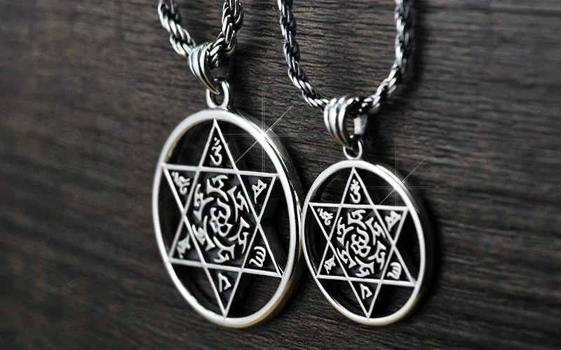 Кулон из 925 пробы серебра с шестью символами и настоящими словами Hexameron для мужчин
