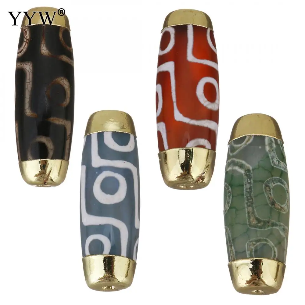 Natural Tibetan Agate Dzi Beads,2014 Brand, plated, fashion jewelry & for woman, more colors for choice, 14x41x14mm, Hole:Approx 2.5mm, Sold By PC
