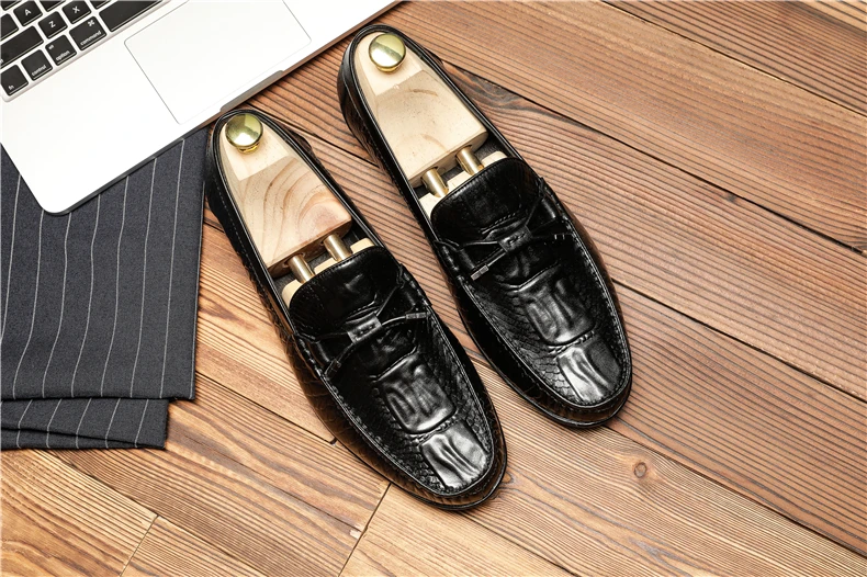 Мужские кожаные повседневные кроссовки, черные Лоферы без застежки, черные мужские кроссовки из натуральной кожи, лето 2020