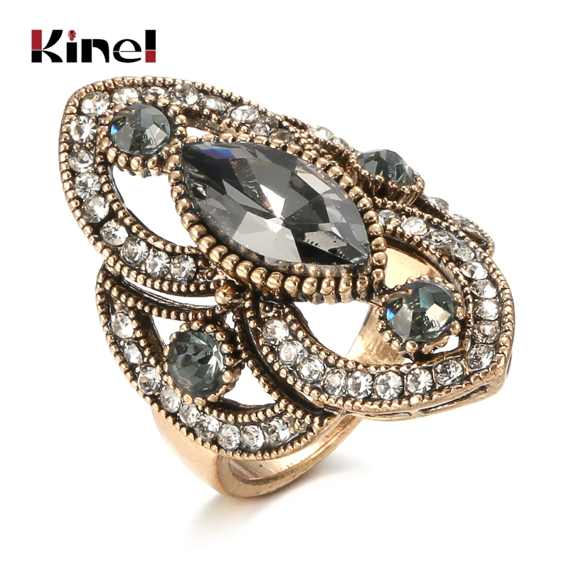 Уникальное серое кольцо Kinel с кристаллами для женщин, аксессуары для вечеринок, античное золото, винтажные свадебные украшения, роскошные подарки, новинка 2020 Тип товара: Кольцо Основной камень: натуральный камень Другой камень: хрусталь Материал: серебристый цвет Случаи: свидание/вечерние/Выпускной/подарок/День Святого Валентина