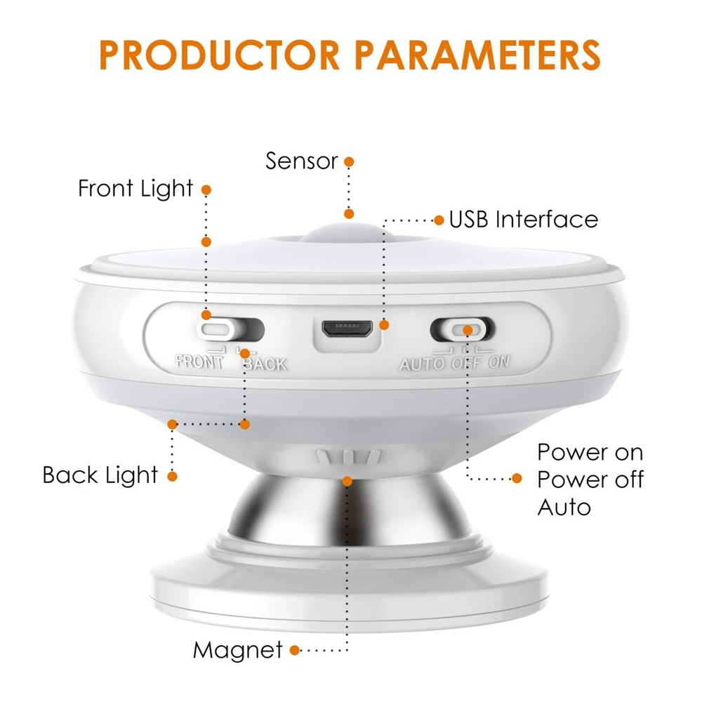Отрегулируйте Ночной светильник под соответствующим углом с вращающимся на 360 градусов корпусом, чтобы избежать попадания светильник на глаза. Даже вы можете выбрать, чтобы включить задний светильник, а не передний светильник.