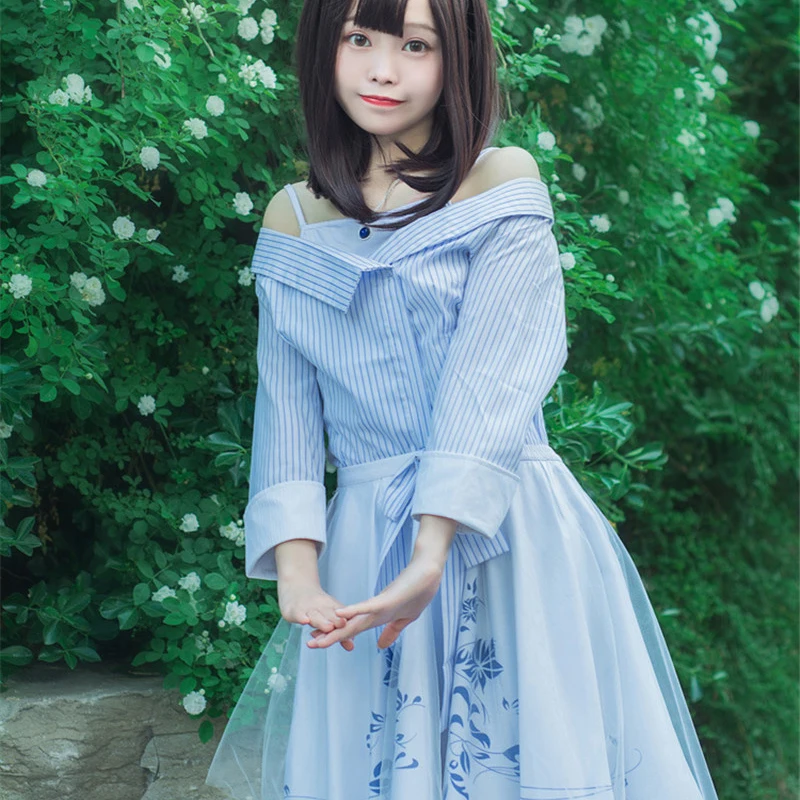 Новинка 2020, милое Повседневное платье для девочек, костюм, костюмы на Хэллоуин, платье с открытыми плечами, аниме для любителей и продюсеров, косплей