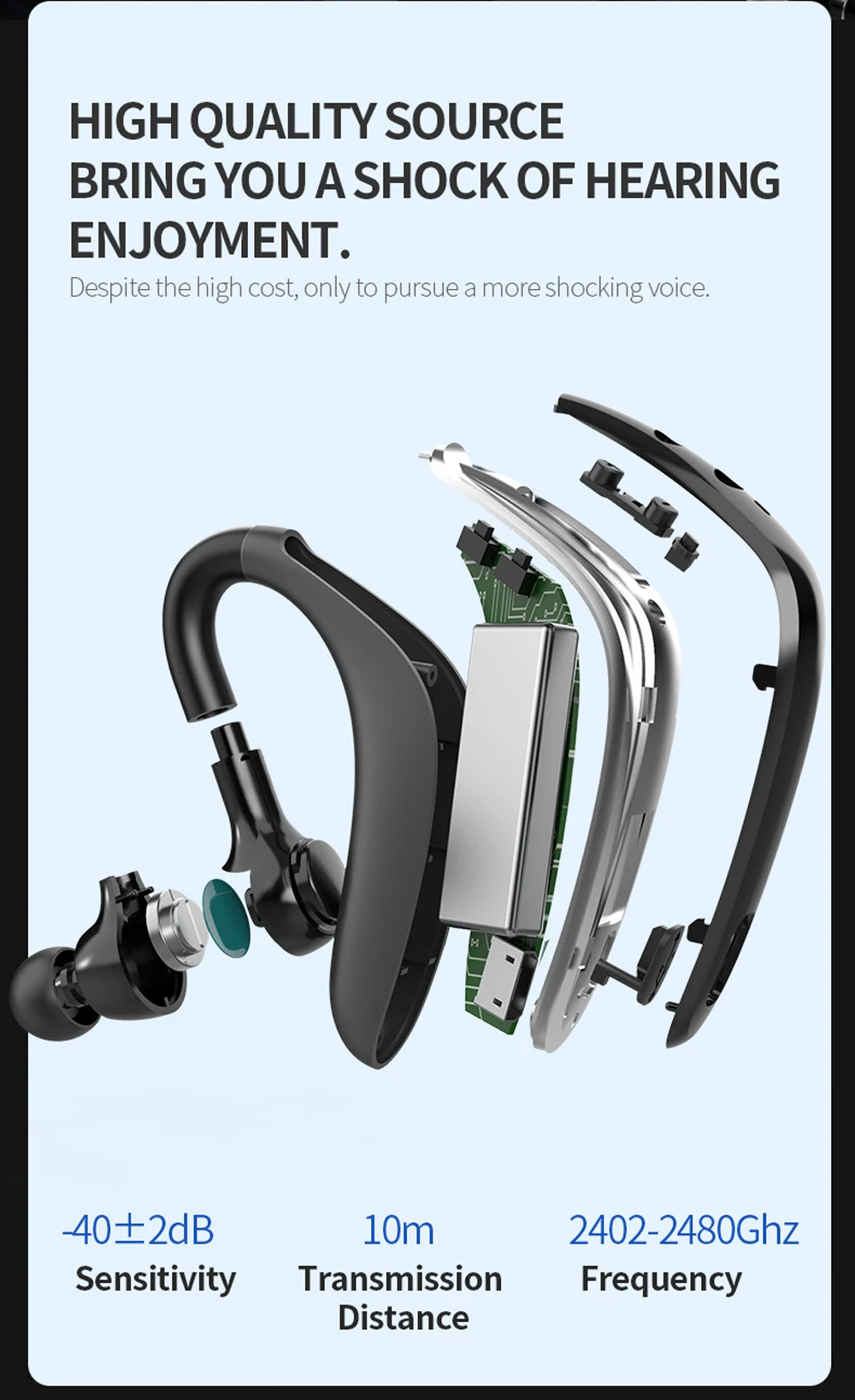 Беспроводные Bluetooth спортивные наушники TWS Handsfree наушники водонепроницаемые с шумоподавлением с микрофоном для спорта в ушах Earphonesll