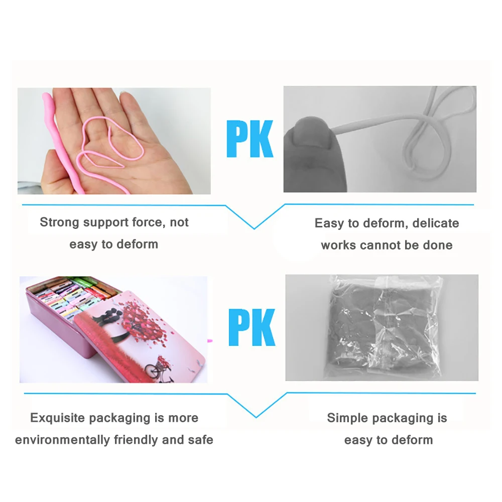 Изготовлен из высококачественного PCV материала, набор полимерной глины является экологически чистым, без запаха, не липкий, безопасныйИ нетоксичный, дети могут чувствовать себя уверенными в игре.