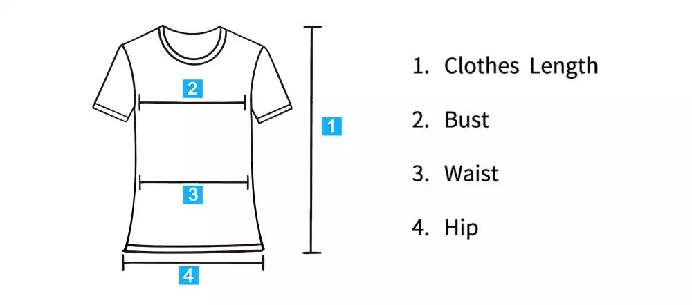 1. Измерьте фактическую длину рубашки, бюст, плечо и рукав, сравните с нашей таблицей размеров.