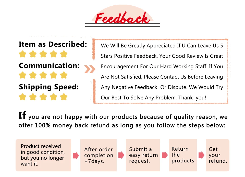 1. Почему длина не такая, как в описании? Мы измеряем длину волос, когда волосы растягиваются до прямой, волнистые и вьющиеся волосы будут намного короче по сравнению с прямыми волосами, обратите на это внимание перед покупкой, спасибо! 2. Почему вес не такой, как в описании? Потому что наш продукт был сделан машиной, это нормально, что он будет существовать 5-10g ошибка. 3. Почему мои волосы запутываются? Волосы будут запутываться из-за сухости, наращивания масла и грязи, соленой воды и не расчесывать (широкая зубная расческа) Ваши волосы ежедневно. Убедитесь, что вы моете и Исправляете волосы не реже одного раза в неделю, и если это возможно, два раза в неделю будет лучше. Вы можете использовать увлажняющие капли или проконсультироваться с вашим стилистом для дальнейших предложений. 4. Могут ли они быть выпрямлены или свернуты? Конечно, они изготовлены из 100% термостойкого волокна, волосы могут быть скручены или выпрямлены, но температура не должна превышать 160 градусов. Пожалуйста, будьте внимательны: пожалуйста, не опускайте волосы после того, как вы его свернули, пока не остынет. Вы можете положить волосы на руку или что-то, что может удерживать локоны волос, чтобы сохранить кудри. 5. Когда вы отправите мою посылку после того, как я оплатил свой заказ? Будет 24-часовая оплата, проверяющая время aliexpress, мы отправим товар в течение 24-48 часов после проверки времени. 6. Как бороться с запахом? Некоторые клиенты могут говорить о запахе при получении волос. Дорогой, не нужно беспокоиться об этом, после совместной стирки и ухода за ним в течение некоторого времени запах исчезнет. 7. Почему цвет не такой, как в описании? Различия в цвете могут быть вызваны некоторыми другими причинами, такими как отражение цвета на мониторе, освещение, фон и т. д. Однако, если вы считаете, что полученный товар не того цвета, пожалуйста, свяжитесь с нами, чтобы узнать, возможен ли возврат или возврат средств.