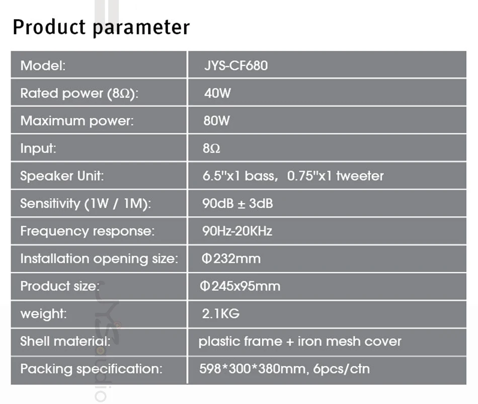 ● Динамик: 6,5 "x1 бас, 0,75" x1 твитер