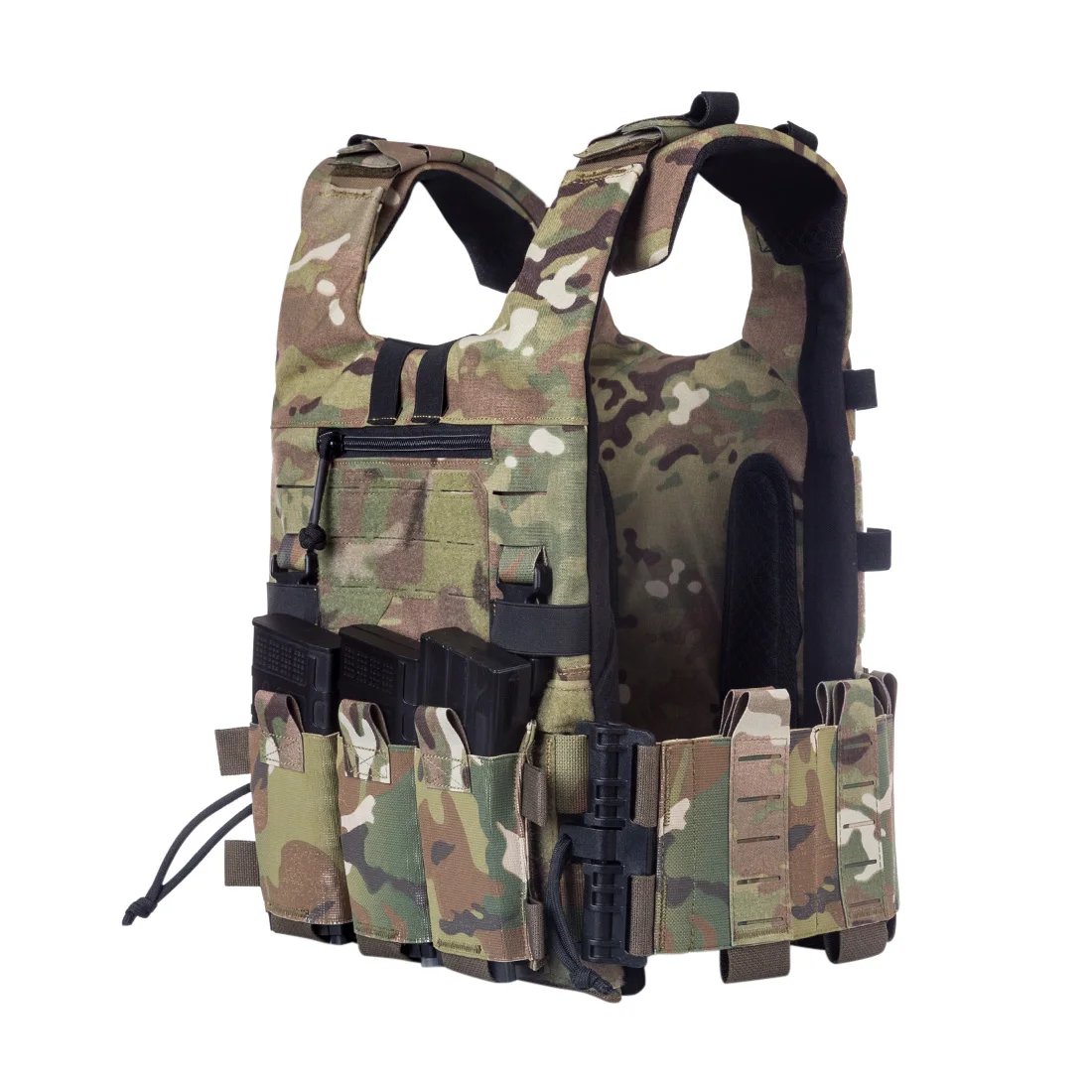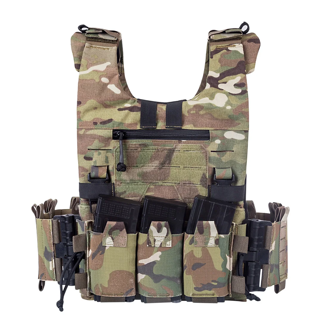 . Боковая стенка имеет лазерную резку + эластичную конструкцию, положение можно разместить с помощью рации или более сумок для магазинов blaster, положение лазерной резки может быть расширено для поддержки сумок blaster системы Molle
