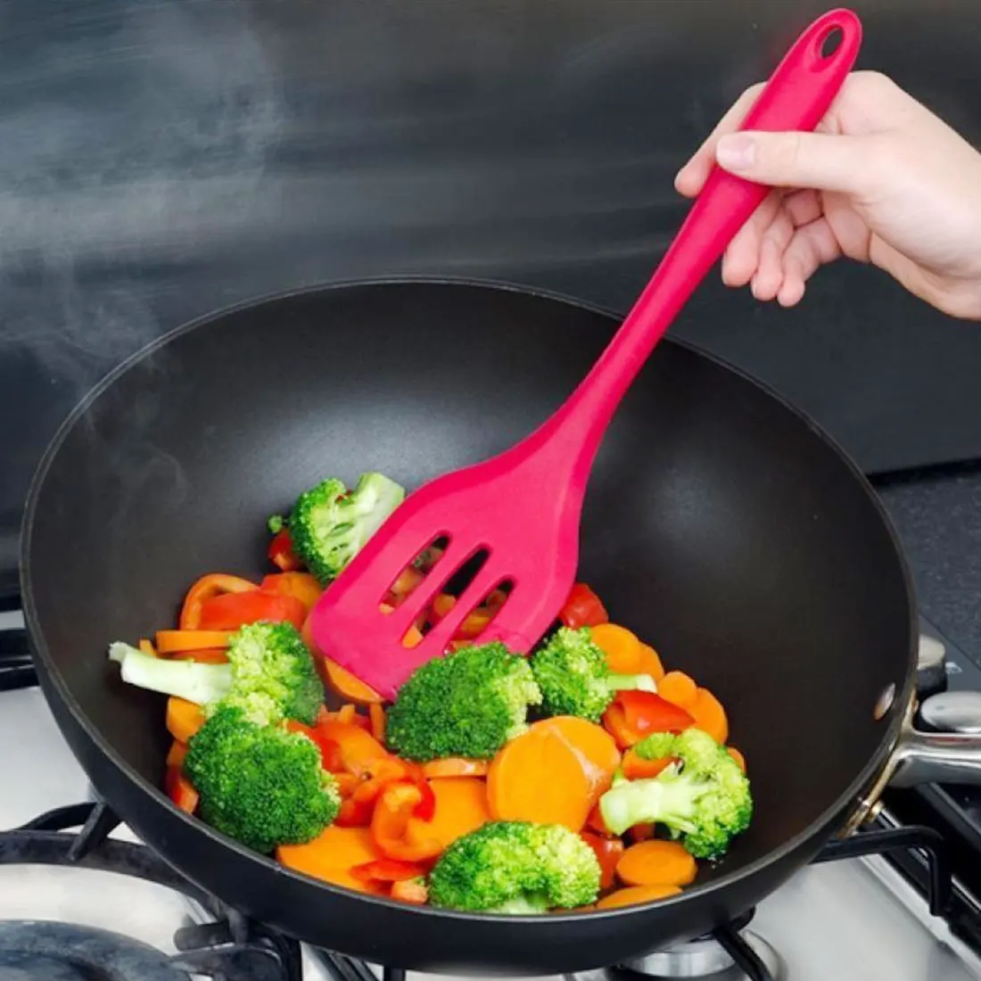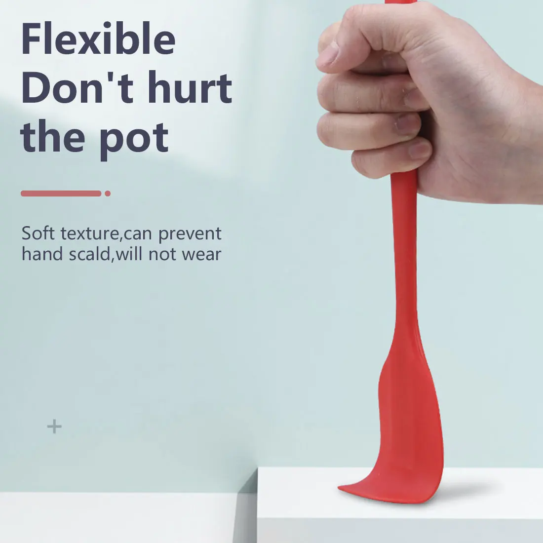 2. Пищевой силиконовый материал-Наша Красная кухонная утварь изготовлена из пищевого силикона, который может быть безопасно приготовлен. Он не будет взаимодействовать с едой или напитками, не будет производить никаких вредных паров и не будет сгибаться или ломаться, как другие дешевые силиконовые кухонные принадлежности. Прочная ручка имеет отличные теплоизоляционные свойства, которые могут предотвратить ожоги рук и обеспечить долгосрочное использование без износа. Силиконовая посуда мягкая и умеренная, которая может защитить вашу антипригарную кастрюлю. Не царапает кастрюли и сковородки.