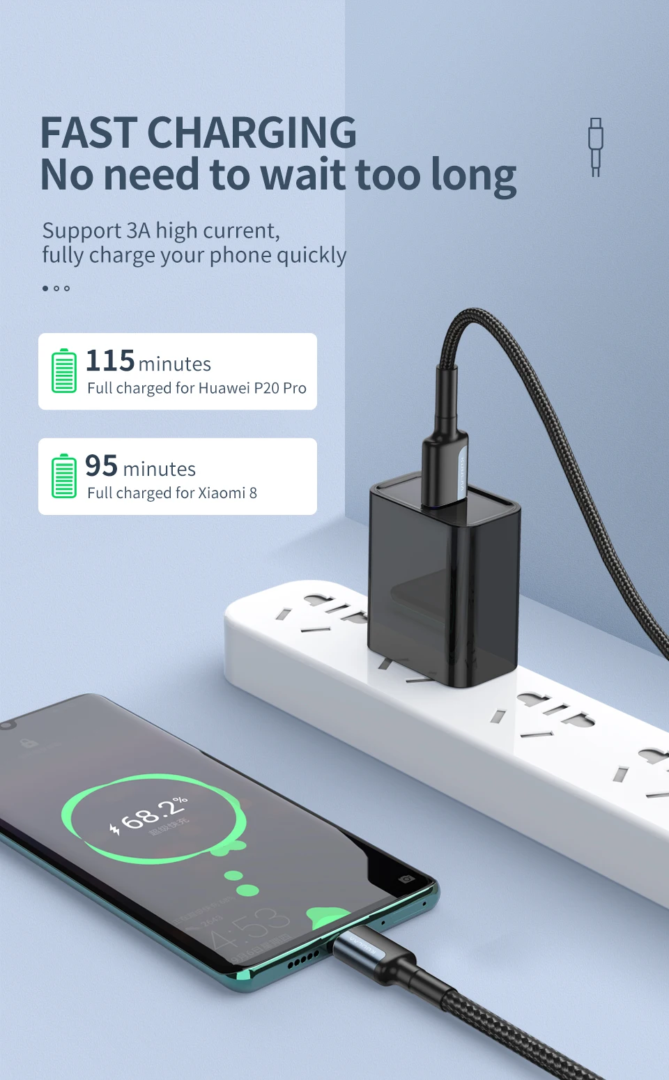Поддержка высокого тока 3 А, быстрая Полная зарядка телефона