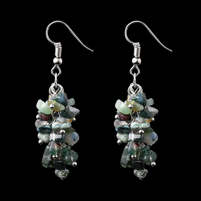 Женские серьги с бахромой ручной работы, серьги-подвески неправильной формы с бусинами из натурального камня в богемном стиле, подвески из смешанных камней