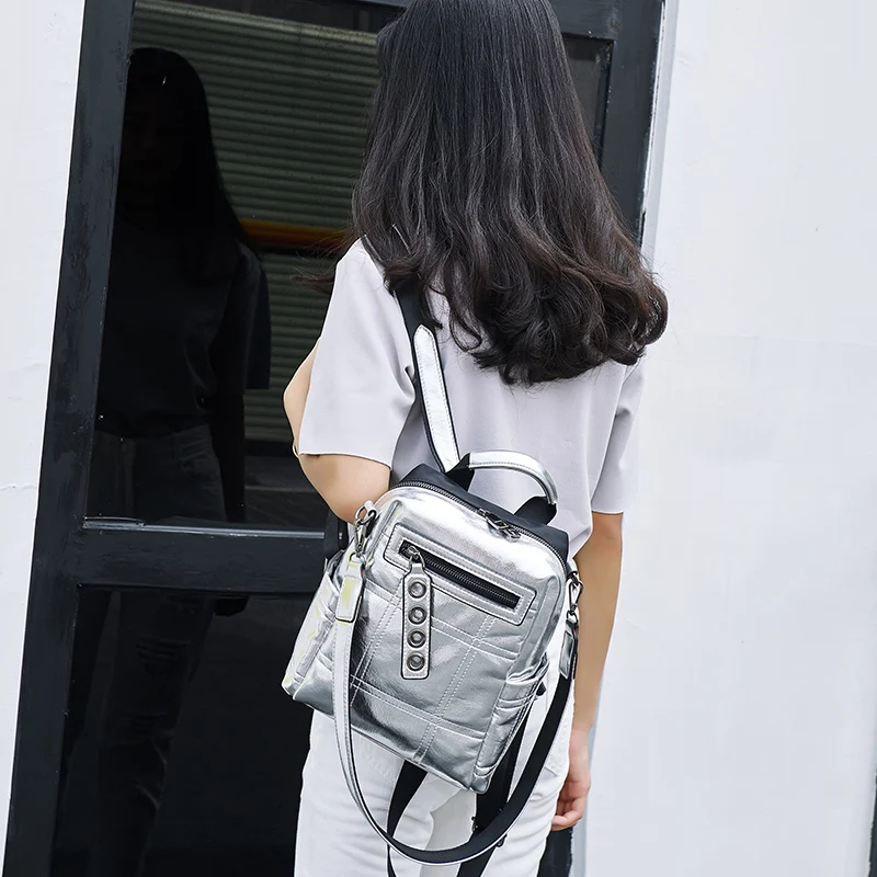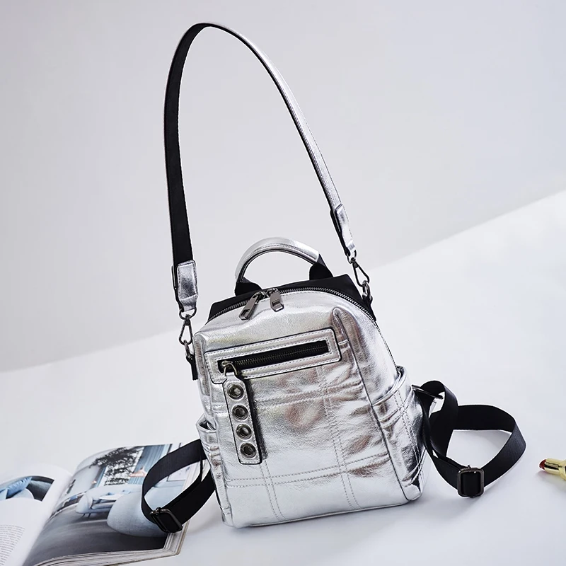 Женская серебряная отражающая трещины двойная Индивидуальная сумка через плечо рюкзак модный дизайн