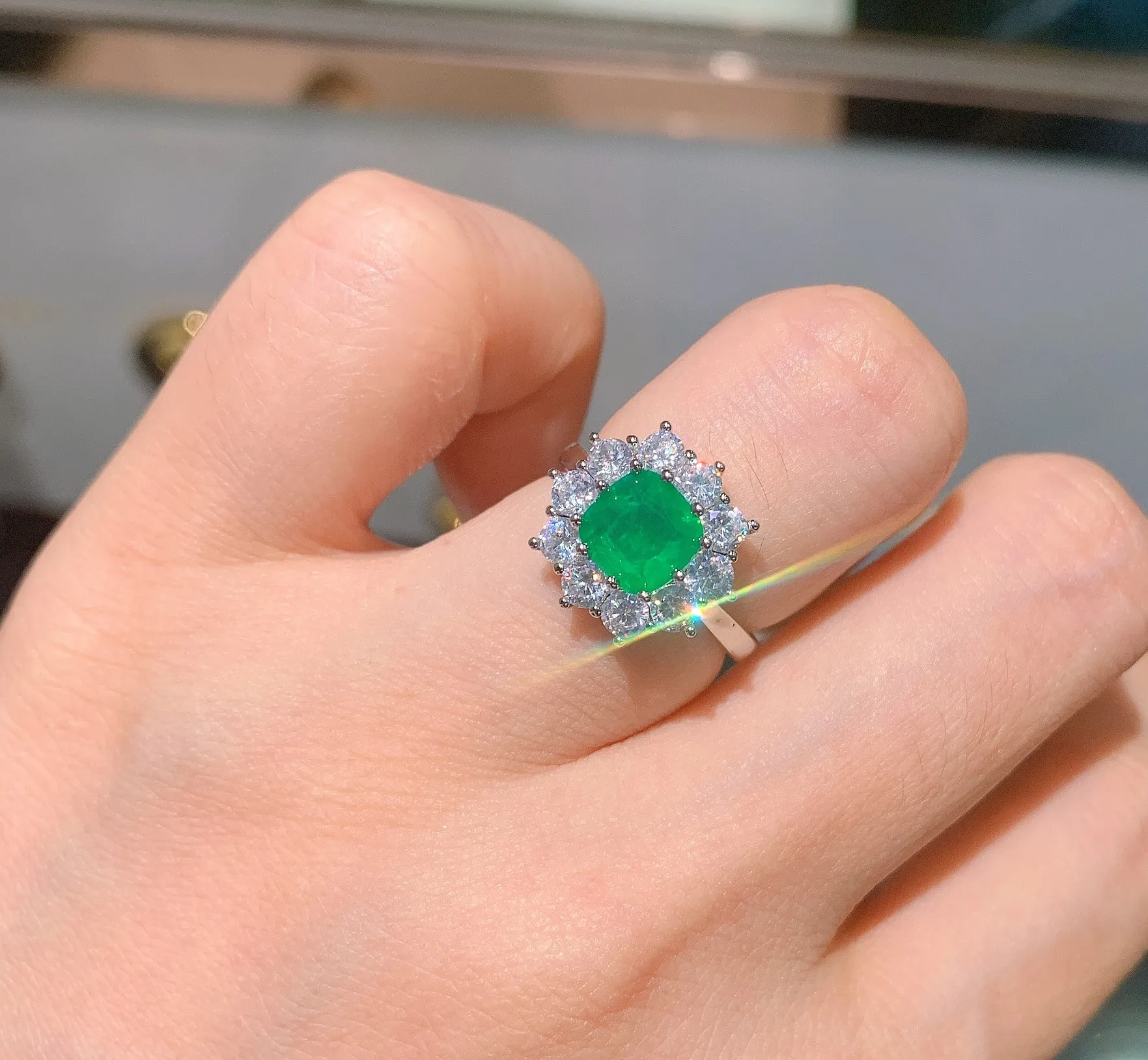 Колье/Серьги/кольцо из серебра 100% пробы с изумрудом