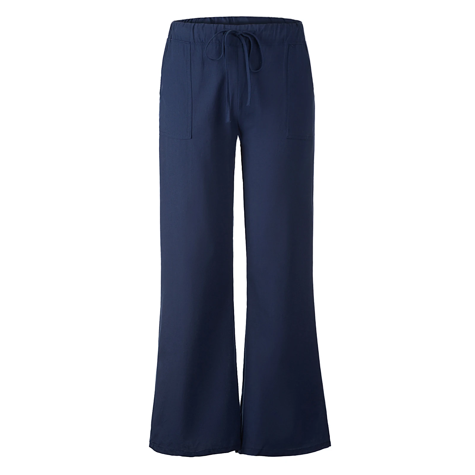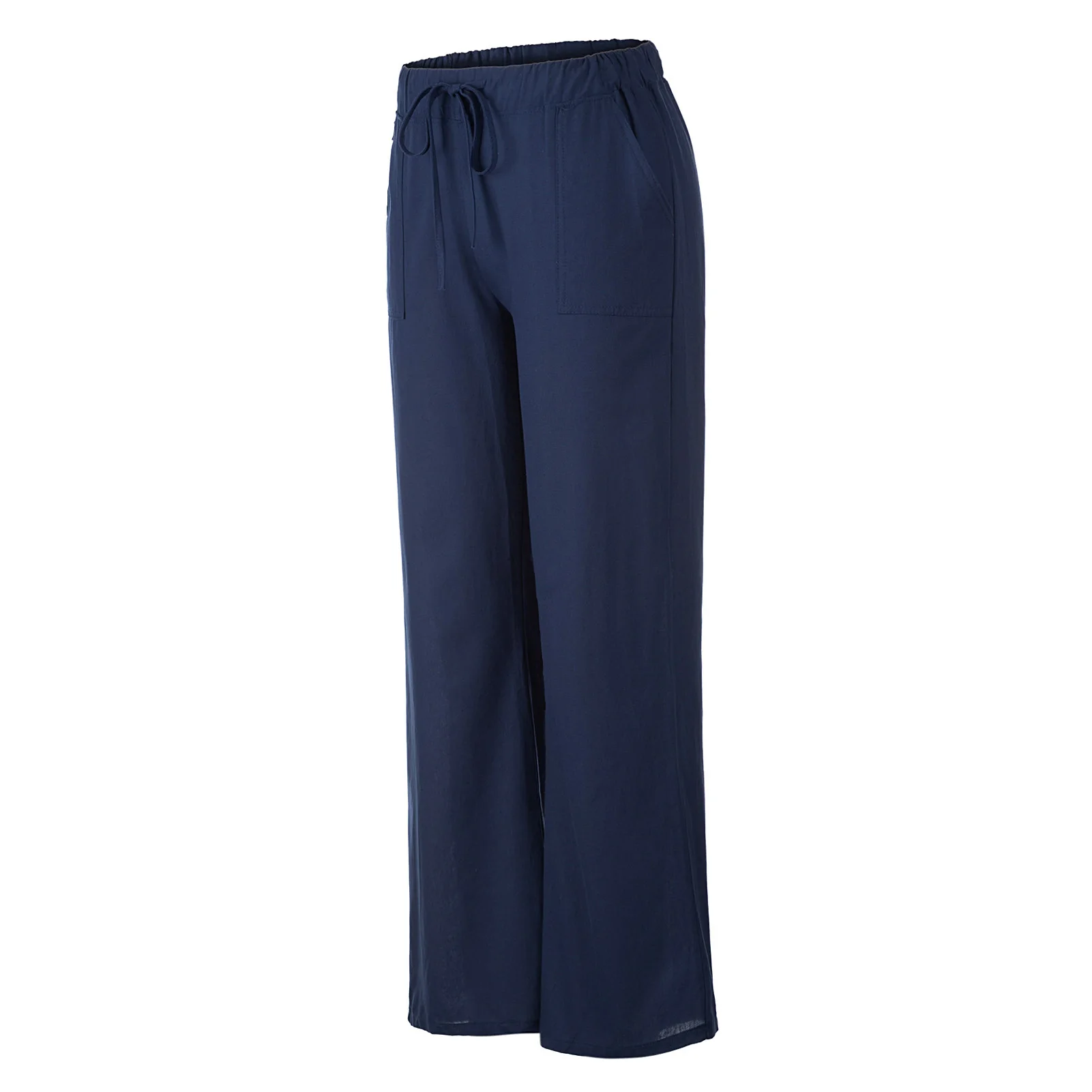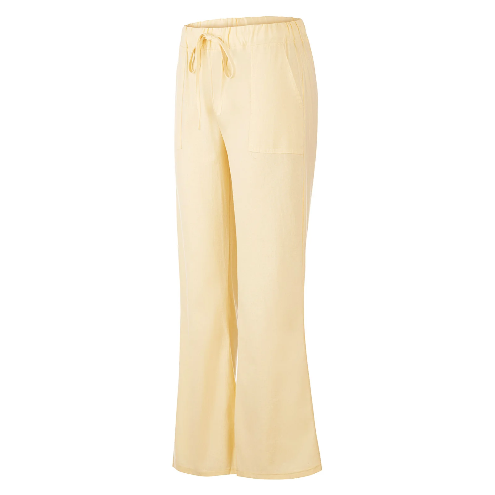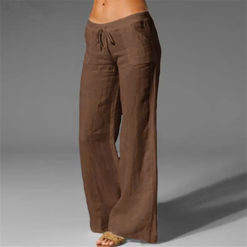 Высокая эластичная талия с кулиской и боковыми карманами.