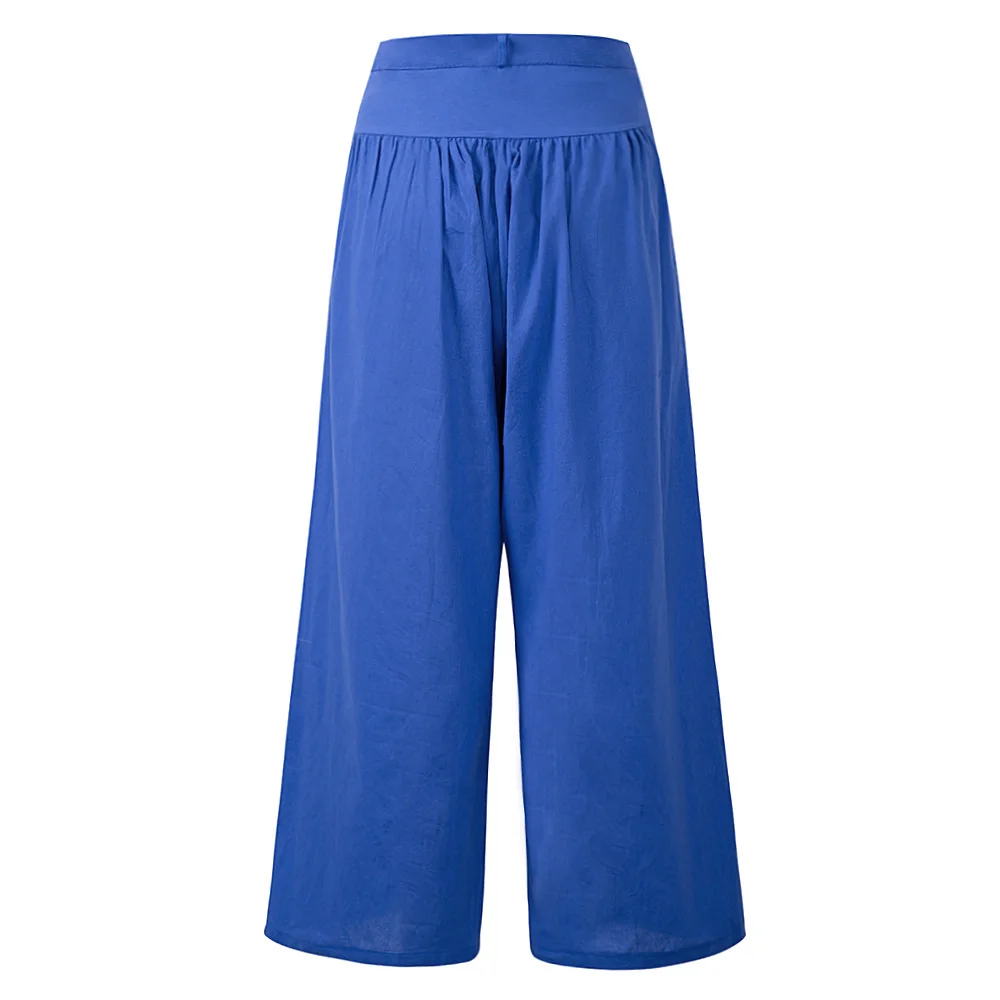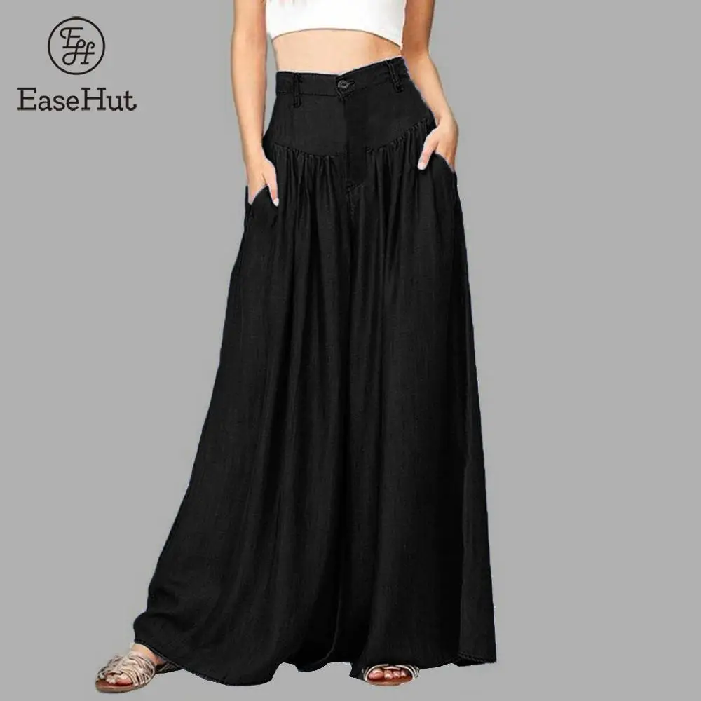 Широкие брюки однотонного цвета могут идеально придать вашим ногам форму и сделать вас стройнее. Закрывается на пуговицу и молнию, есть два кармана для хранения мелочей.