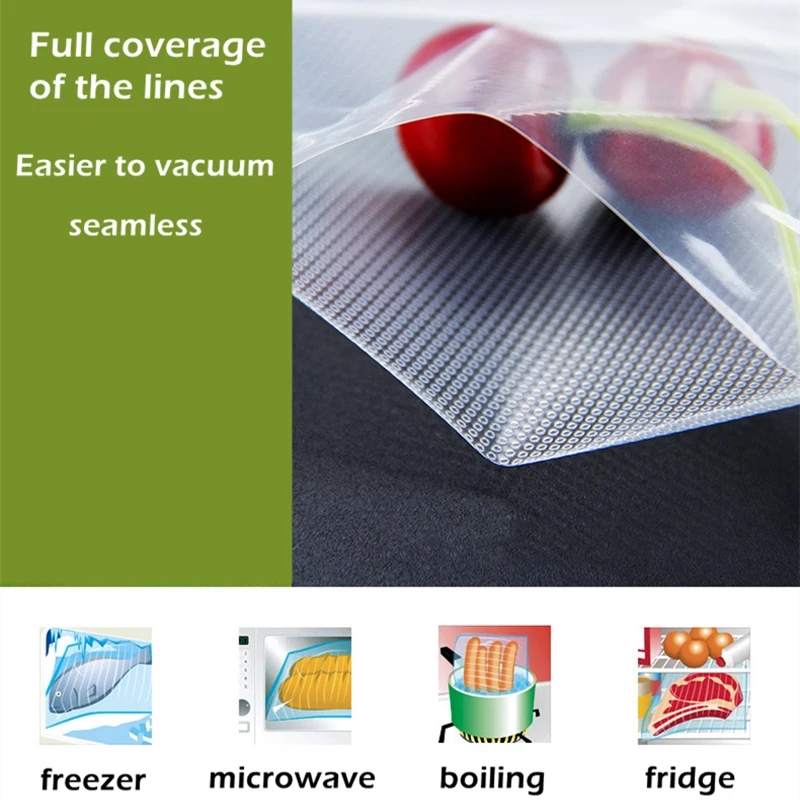 -Свободная резка, простота в использовании -Устойчивость к замерзанию, может выдерживать перепады температуры и нагреваться -Свежее время хранения, сохраняет запах, безопасность -Зеленая защита окружающей среды, вы можете отрезать рот запечатанного мешка, очистить и повторно использовать -Используется для вакуумной упаковки, асептической упаковки, зерновой мешок-это боковые линии давления, другая сторона гладкого профессионального вакуумного мешка, подходит для всех вакуумных камер дома и за рубежом, принцип автоматической вакуумной упаковочной машины.