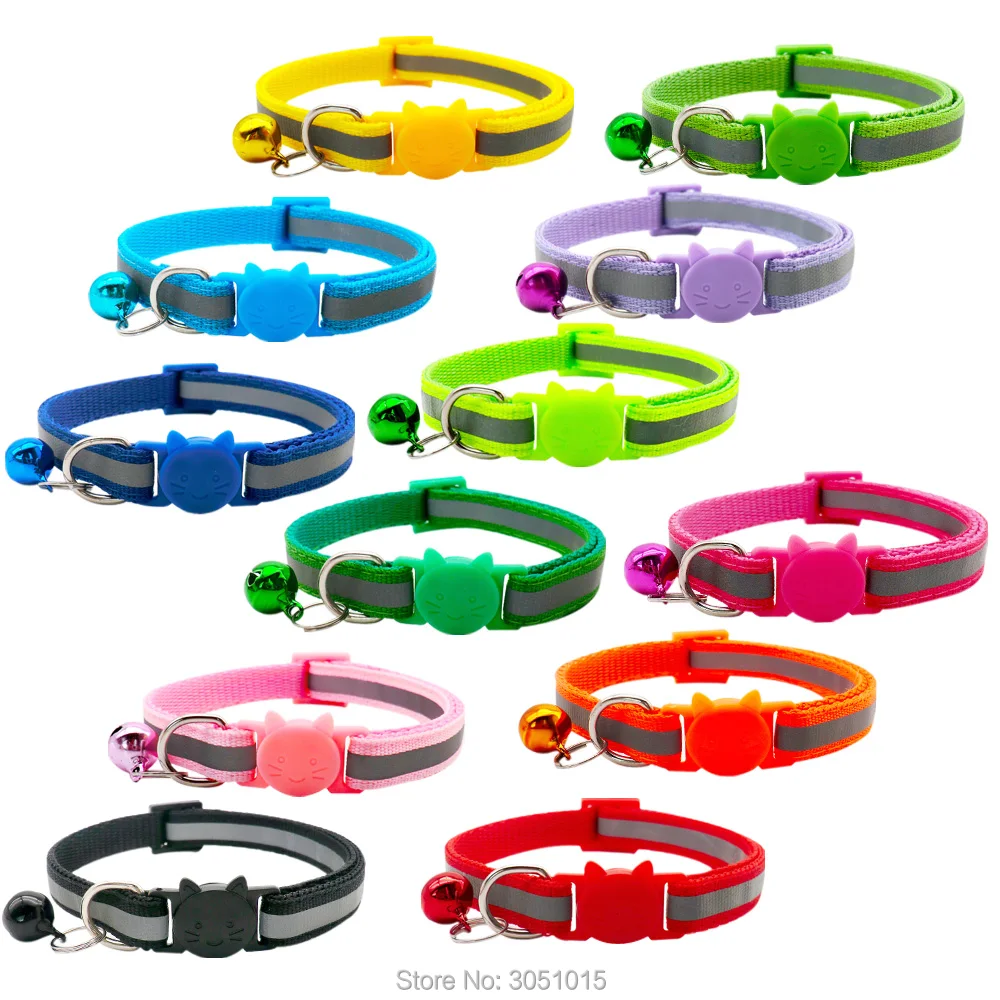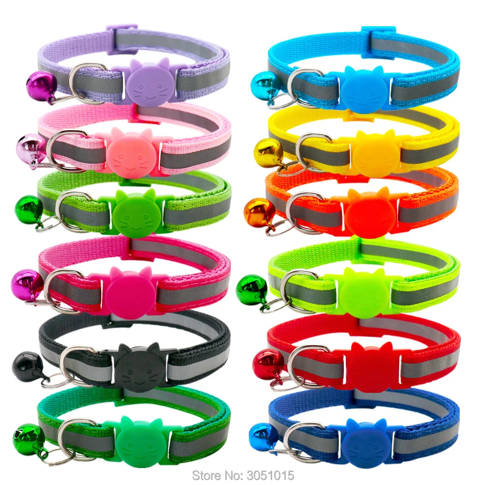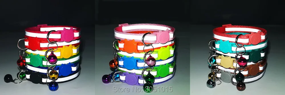 Оптовая продажа 100 шт Регулируемый отражающий для собак ошейники с колокольчиком пряжка легко носить щенок собака кошка ошейник аксессуары для животных принадлежности
