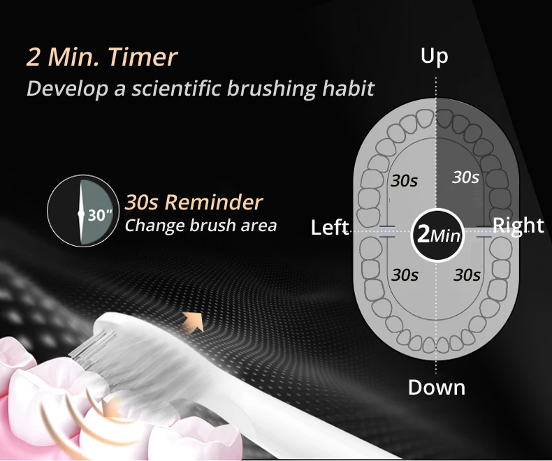 1. Displaying bristles, change a new brush head when the color of bristles fade away.