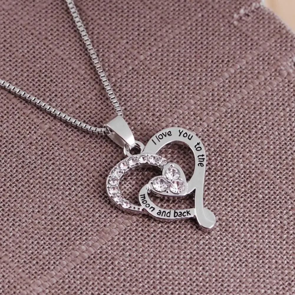 I Love You to the Moon полый кулон в виде сердца со стразами ожерелье подарок на день матери