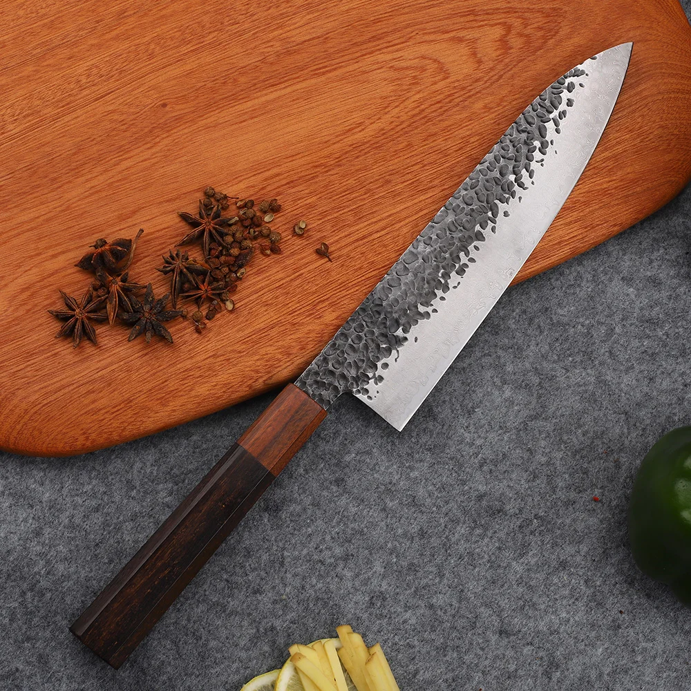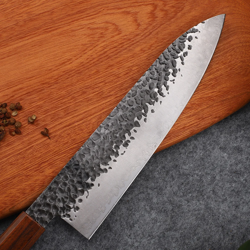 Наименование: 8-дюймовый Профессиональный поварской ножПолная длина: 36 см,Длина клинка: 20,5,Ручка: 14 см,Толщина: 2,5 ммШирина клинка: 4,5 см,Сталь клинка: дамасская VG10 кованая сталь,Твердость: 59-60HRCВес нетто; 187 граммМатериал ручки: Натуральное твердое дерево + тяжелый бамбукЧеткость: Острая БритваПоскольку измерения выполняются вручную, пожалуйста, держите расстояние 2-3 см.