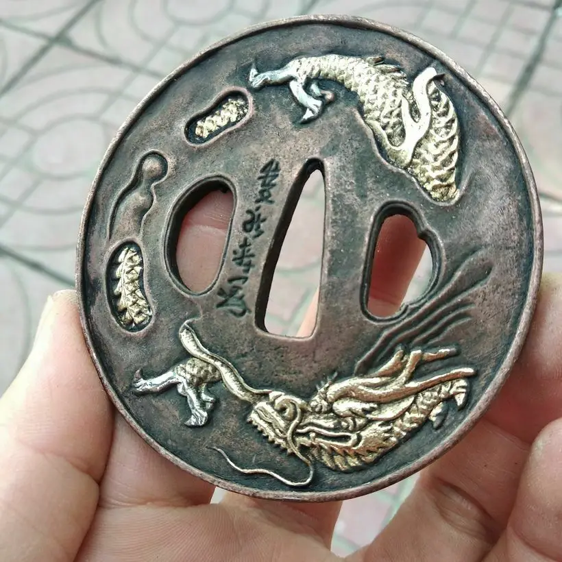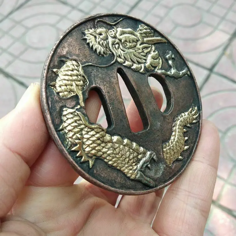 Винтажная Чистая медь Цуба части Аксессуары Дракон Тотем для Японии Катана короткий самурайский меч Танто лезвие
